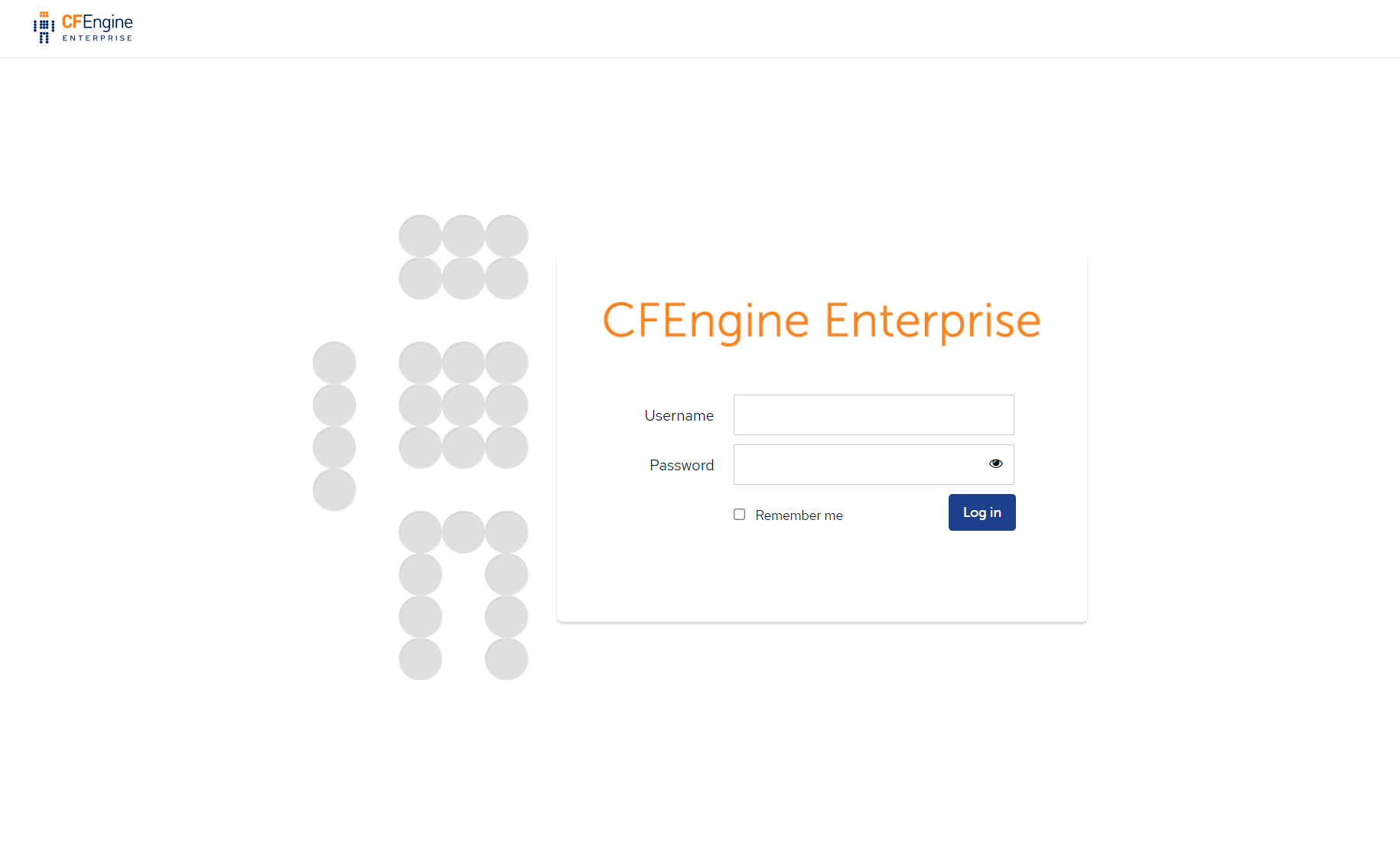 After this, you should see the CFEngine Enterprise login screen. Log in with username admin, password admin, and you will be asked to change the password.